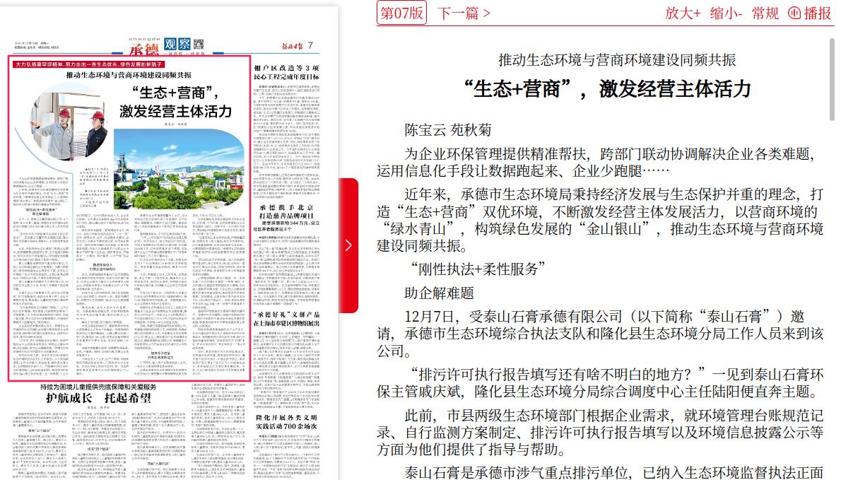 河北日报:承德:推动生态环境与营商环境建设同频共振 “生态+营商”,激发经营主体活力“生态+营商”,激发经营主体活力