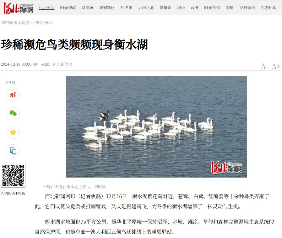 河北新闻网:珍稀濒危鸟类频频现身衡水湖