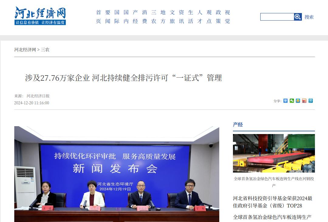 河北经济网:涉及27.76万家企业 河北持续健全排污许可“一证式”管理