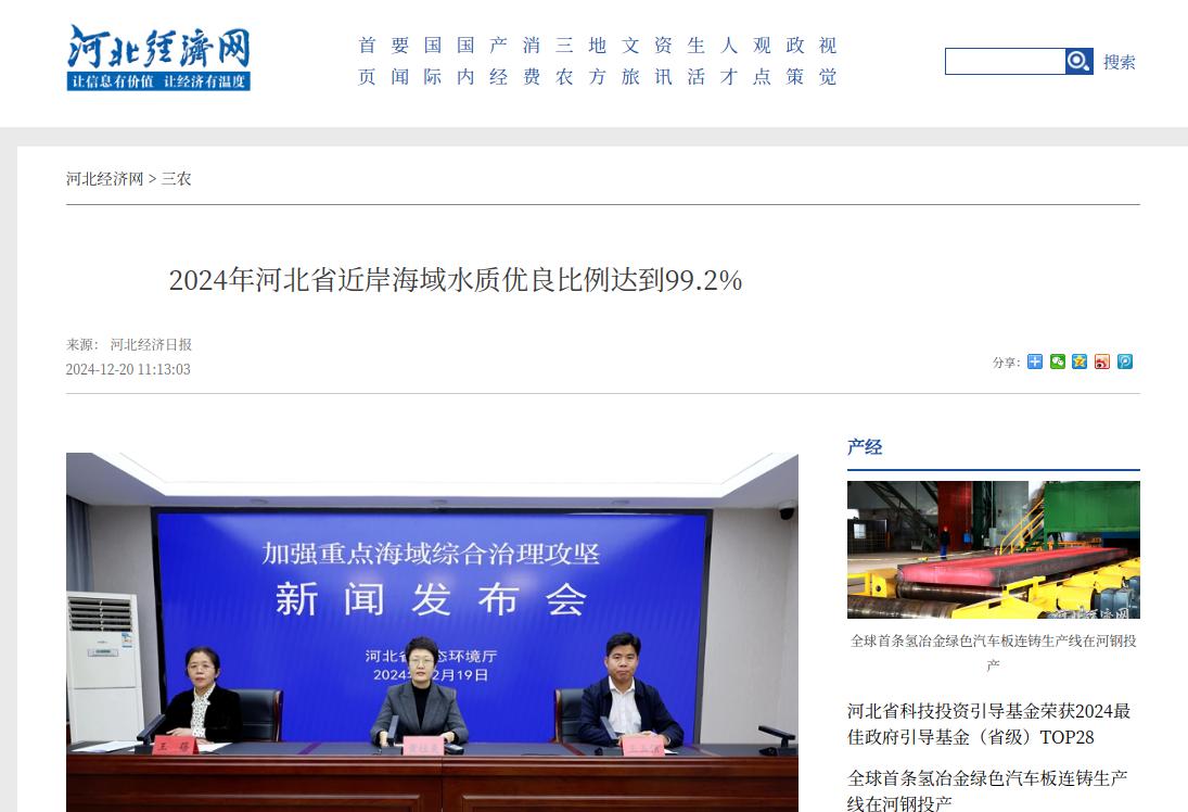 河北经济网:2024年河北省近岸海域水质优良比例达到99.2%