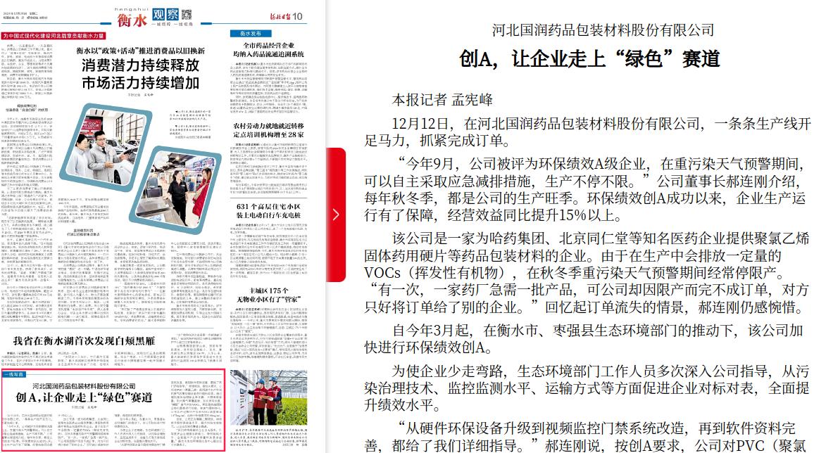 河北日报:创A,让企业走上“绿色”赛道