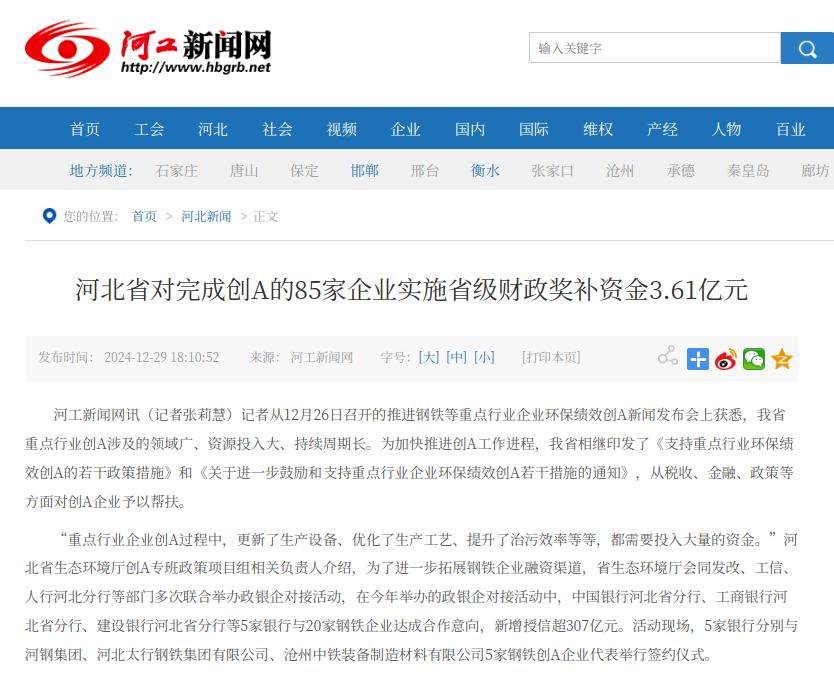 河工新闻网:河北省对完成创A的85家企业实施省级财政奖补资金3.61亿元