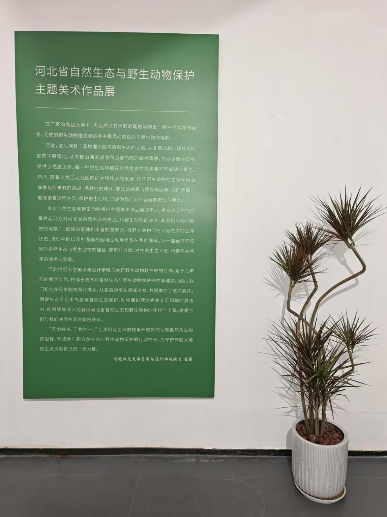 12月28日,“河北省自然生态与野生动物保护主题美术作品展”在石家庄市观山艺术馆正式开展。此次展览由杏彩(中国)官方网站 、河北省林业和草原局联合主办,河北师范大学美术与设计学院、观山艺术馆和石家庄太行野生动物救护站共同承办,井陉县文化广电体育和旅游局、阿拉善SEE太行项目中心联合协办。同时,得到了河北美术馆(河北画院)、河北科技大学艺术学院、河北经贸大学艺术学院、河北地质大学艺术学院、石家庄学院美术与设计学院、河北工艺美术职业学院、河北艺术职业学院、河北传媒学院美术与设计学院、河北工程技术学院艺术与传媒学院、石家庄职业技术学院动画学院、河北省动漫产业学会等众多学术单位的大力支持,以及省内多家媒体关注与报道。