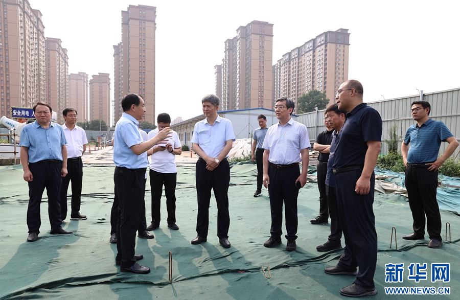 梅世彤(左五)赴鹿泉生态环保示范区专班调研扬尘管控工作。杏彩(中国)官方网站 供图