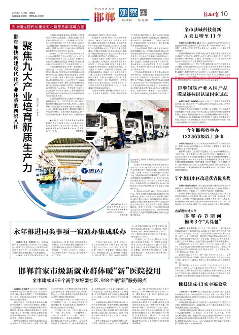河北日报:邯郸钢铁产业入围产品碳足迹标识认证国家试点 来源:河北日报 时间:2025-01-14