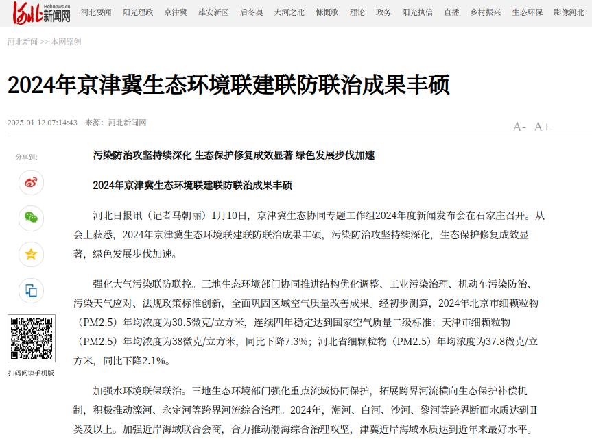 河北新闻网:2024年京津冀生态环境联建联防联治成果丰硕