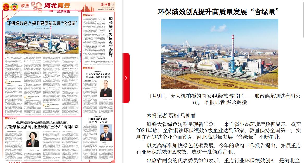 河北日报:环保绩效创A提升高质量发展“含绿量”