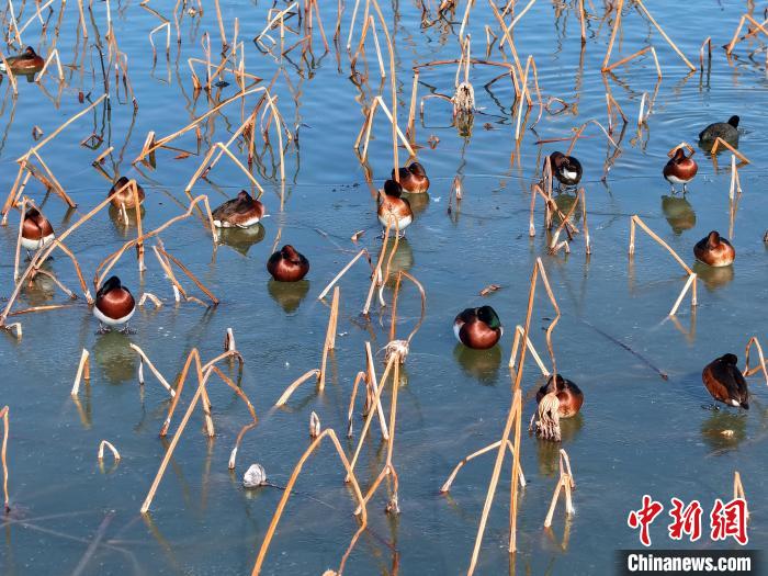 中新社衡水1月16日电 (裴国荣 崔志平 张凯)“这次拍摄到的青头潜鸭集群经过确认达到120只,是2018年以来衡水湖观测到的最大种群。”16日,河北衡水滨湖新区资源保护局湿地生态监测科科长张余广称。
