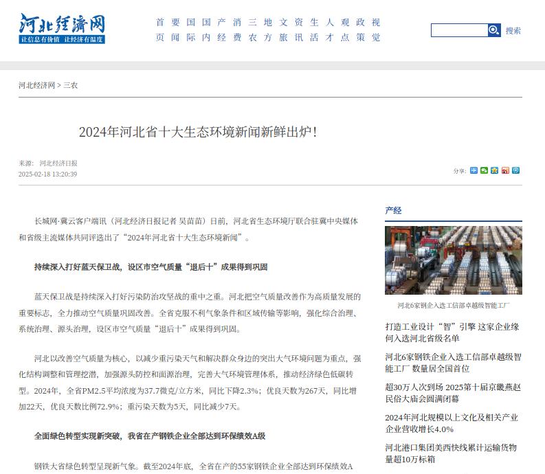河北经济网:2024年河北省十大生态环境新闻新鲜出炉!
