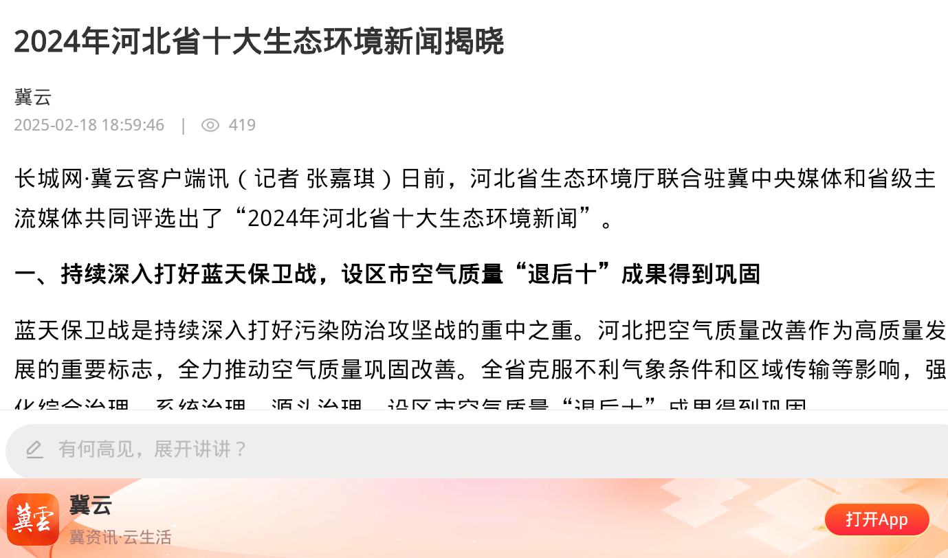 冀云客户端:2024年河北省十大生态环境新闻揭晓