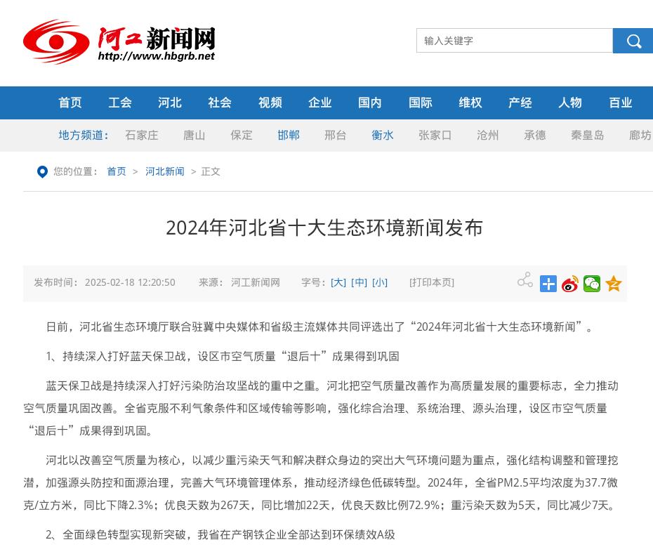 河工新闻网:2024年河北省十大生态环境新闻发布