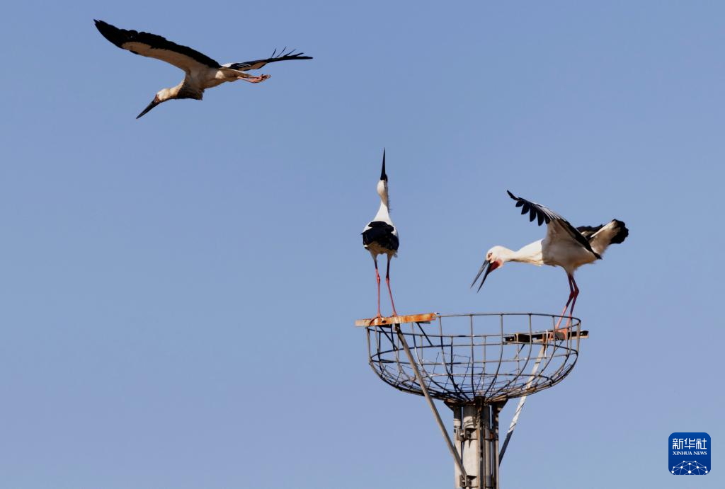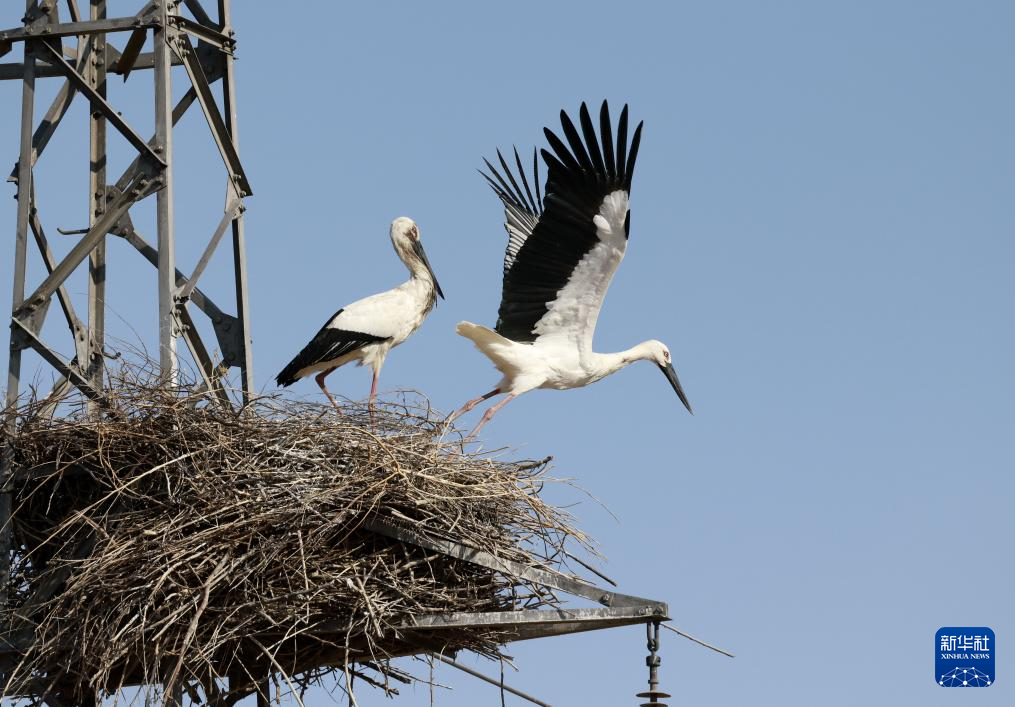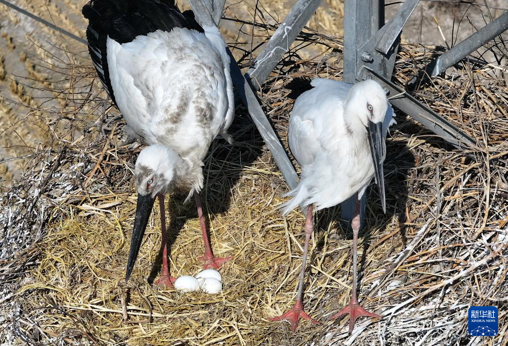 新华网客户端:河北丰南:又见东方白鹳沿海湿地筑巢孵化