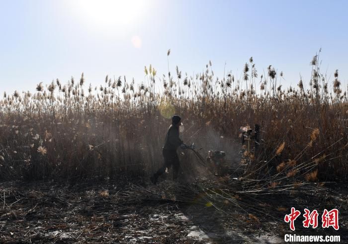 2021年1月8日,雄安新区安新县冬季冰上芦苇收割现场。(资料图)中新社记者 韩冰 摄