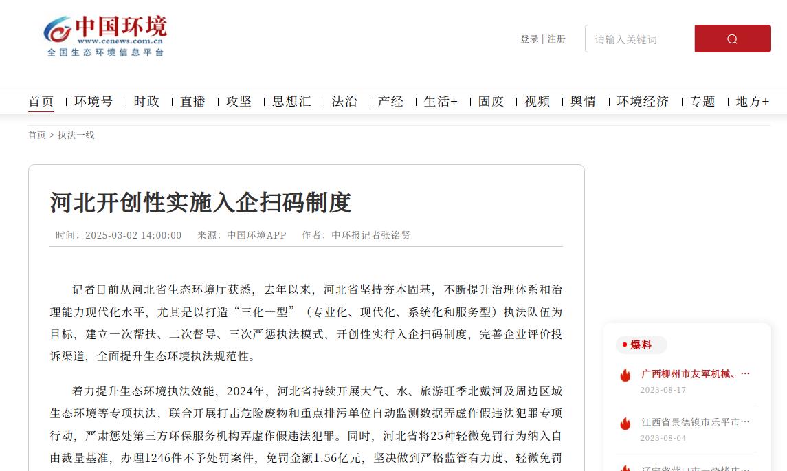 中国环境客户端:河北开创性实施入企扫码制度