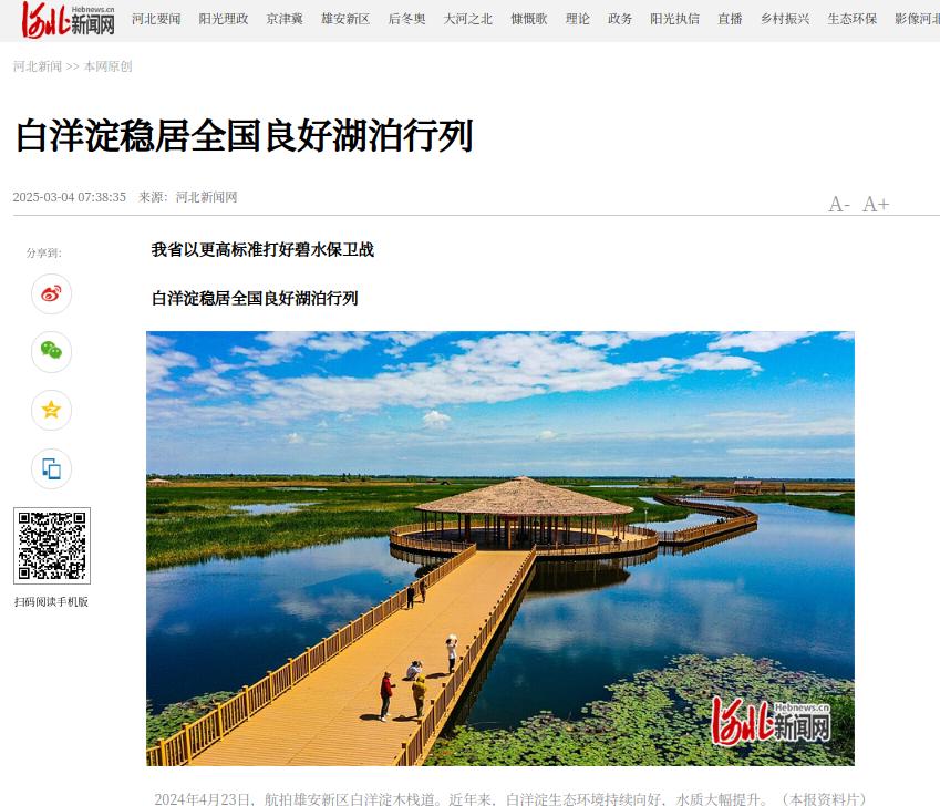 河北新闻网:白洋淀稳居全国良好湖泊行列
