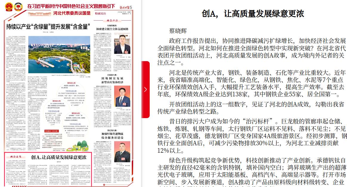 开放团组活动上的这一组数字,见证了河北的创A成效,勾勒出我省传统产业绿色转型之路。