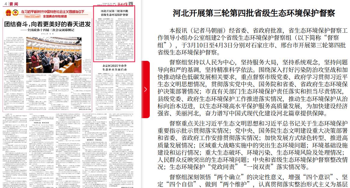 河北日报:河北开展第三轮第四批省级生态环境保护督察