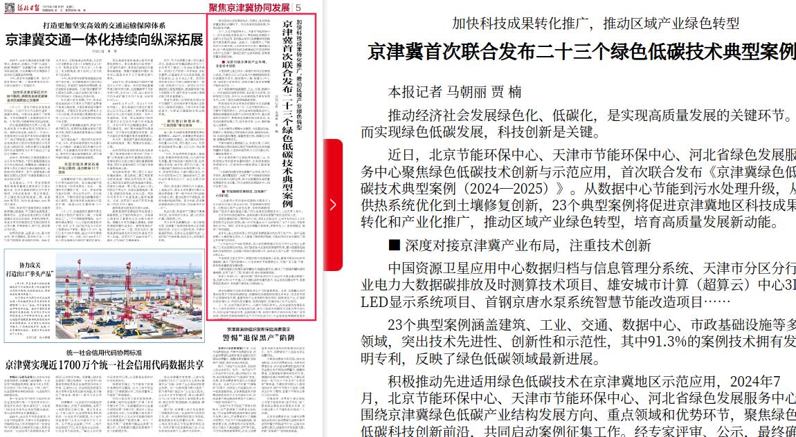 河北日报:京津冀首次联合发布二十三个绿色低碳技术典型案例