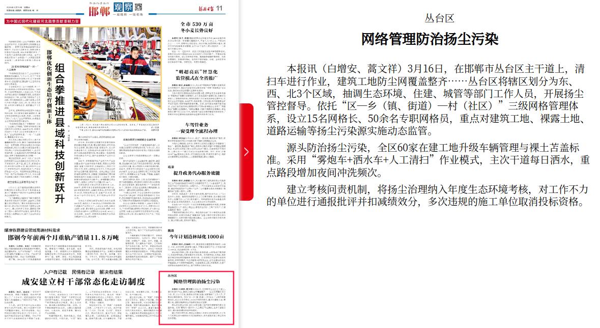 河北日报:邯郸观察:丛台区 网络管理防治扬尘污染
