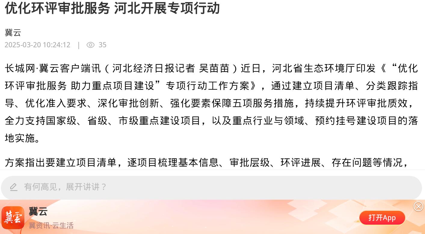 冀云客户端:优化环评审批服务 河北开展专项行动