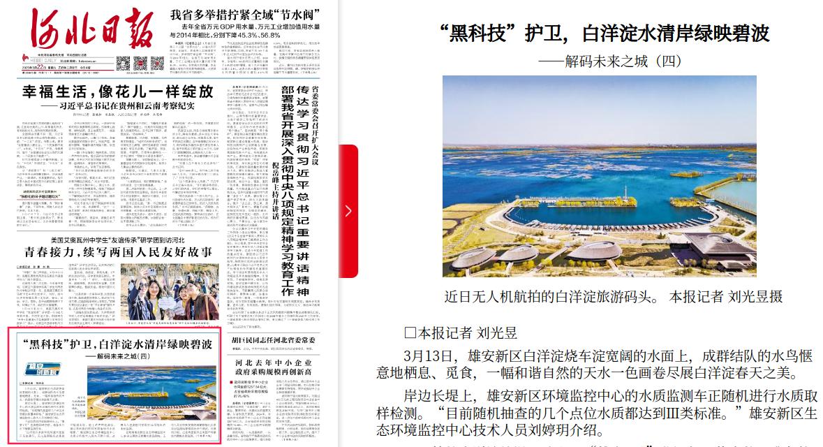 河北日报:“黑科技”护卫,白洋淀水清岸绿映碧波 ——解码未来之城(四)