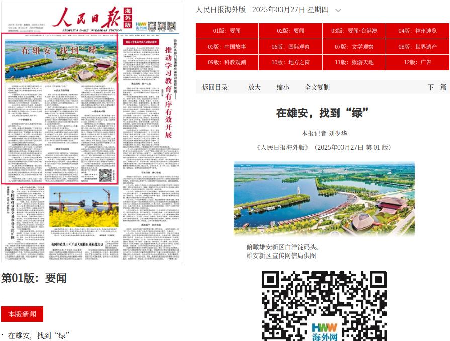 人民日报海外版头版头条聚焦|在雄安,找到“绿”