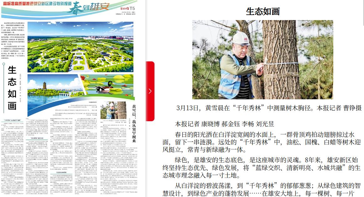 从白洋淀的碧波荡漾,到“千年秀林”的郁郁葱葱;从绿色建筑的智慧设计,到绿色产业的蓬勃发展……在雄安大地上,每一棵树、每一片水、每一座建筑,都在讲述着一个关于绿色与未来的故事。