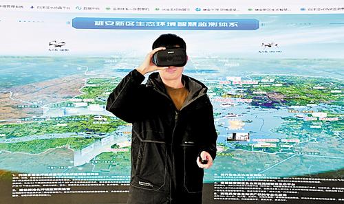 “所有监测设备取得的数据都会在第一时间传送到这里的指挥中心。”雄安新区生态环境监控中心里,水质分析技术人员朱天哲介绍,“使用‘VR+5G’技术,监测人员在指挥中心就能实现对各监测站现场的全景监测,如身临其境,还能任意转换监测场景。”