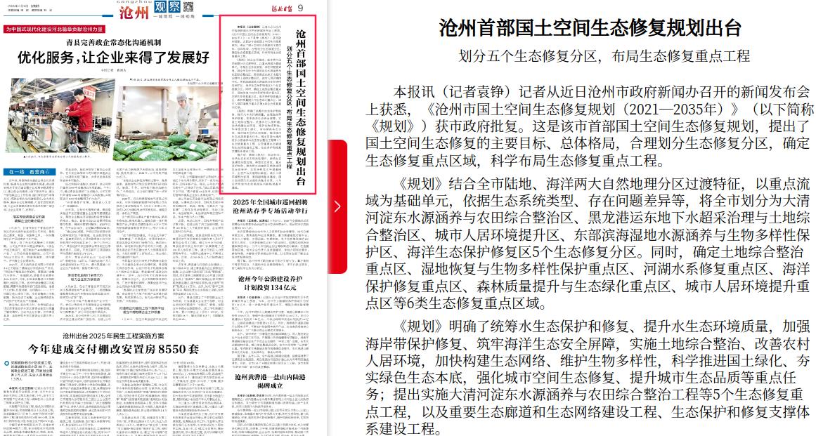 河北日报:沧州首部国土空间生态修复规划出台