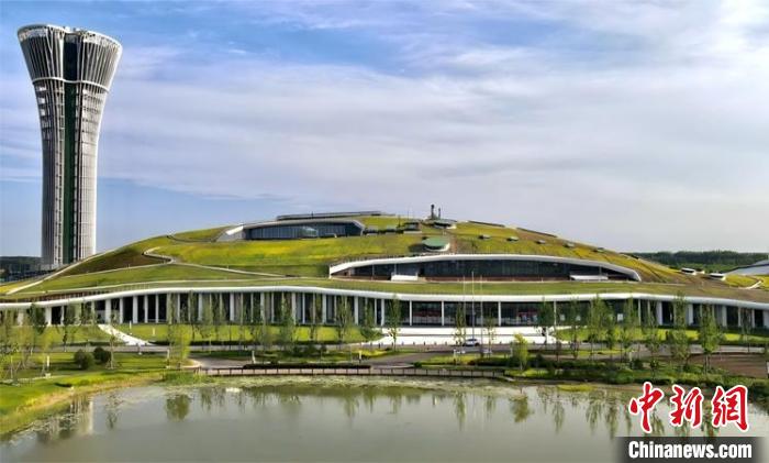 从胡各庄出来,开车10分钟即可看到一座覆土式“花园”——雄安“无废城市”宣教基地之一雄安光大生态产业园。