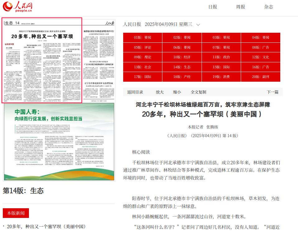 人民日报:河北丰宁千松坝林场植绿超百万亩,筑牢京津生态屏障 20多年,种出又一个塞罕坝(美丽中国)
