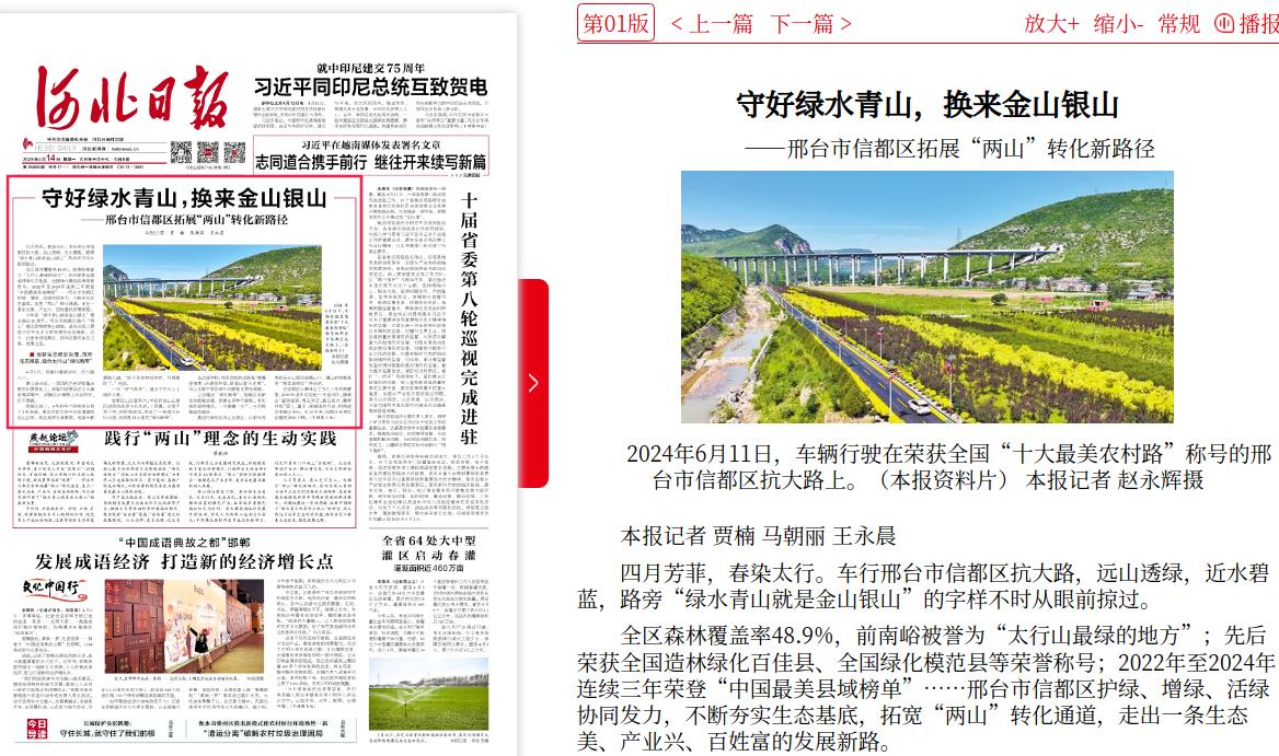 河北日报:守好绿水青山,换来金山银山 ——邢台市信都区拓展“两山”转化新路径