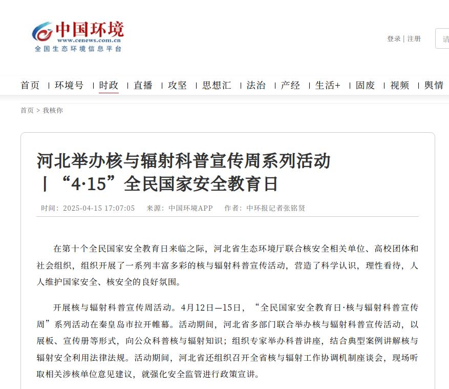 中国环境客户端:河北举办核与辐射科普宣传周系列活动丨“4·15”全民国家安全教育日