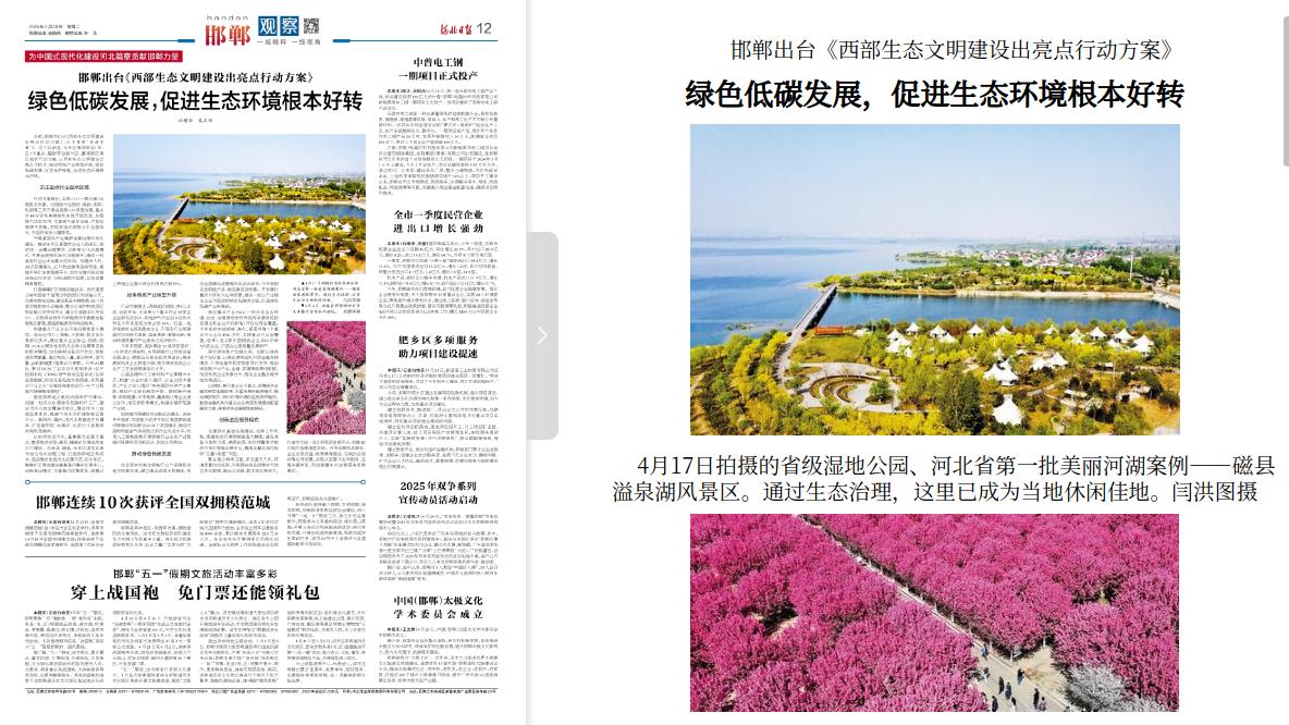 河北日报:邯郸出台《西部生态文明建设出亮点行动方案》 绿色低碳发展,促进生态环境根本好转