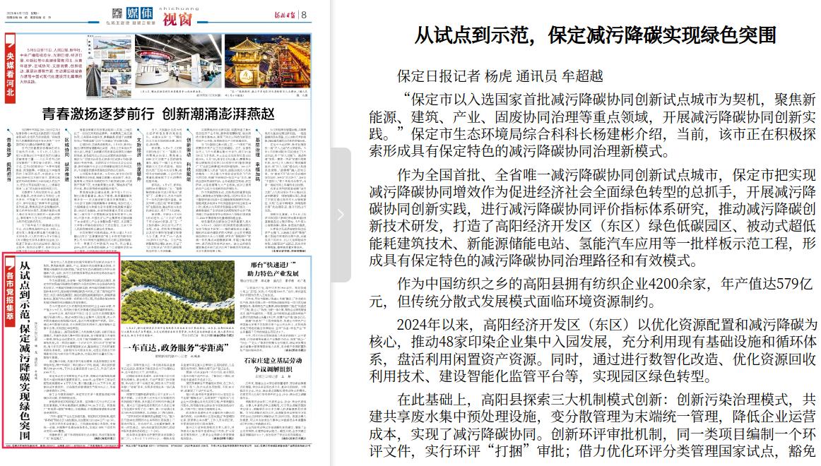 河北日报:从试点到示范,保定减污降碳实现绿色突围