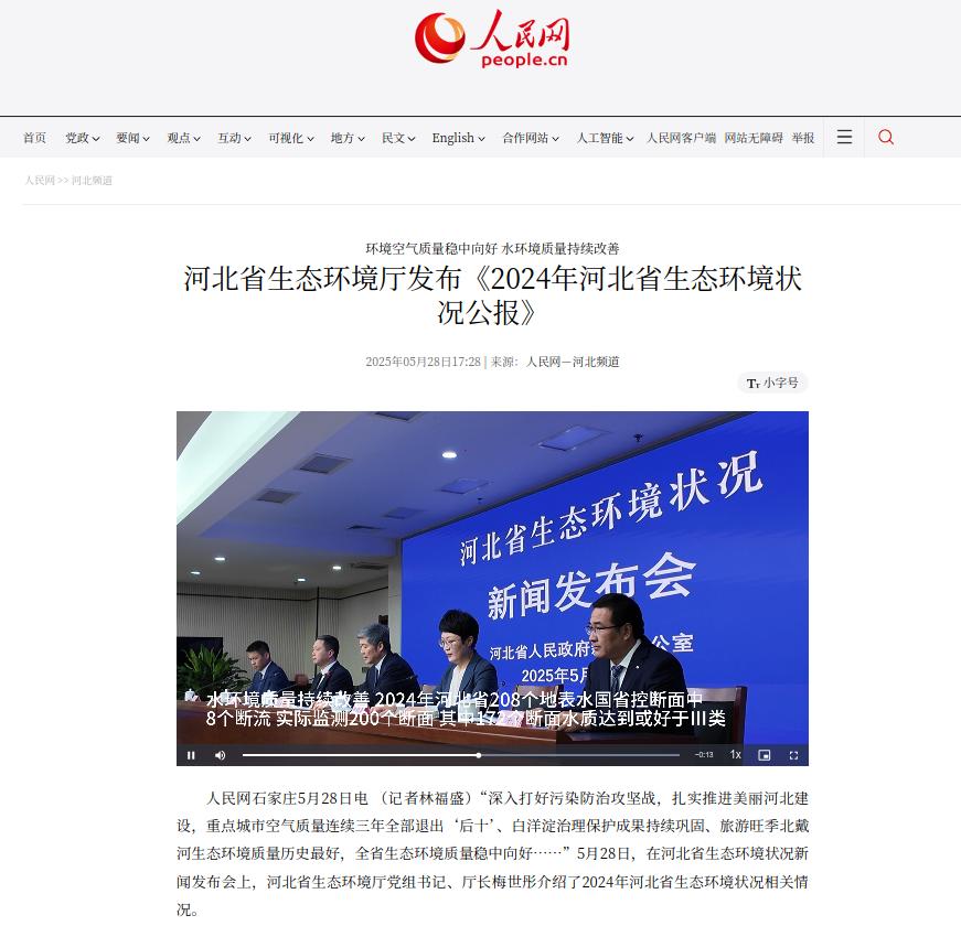 人民网:环境空气质量稳中向好 水环境质量持续改善 杏彩(中国)官方网站 发布《2024年河北省生态环境状况公报》