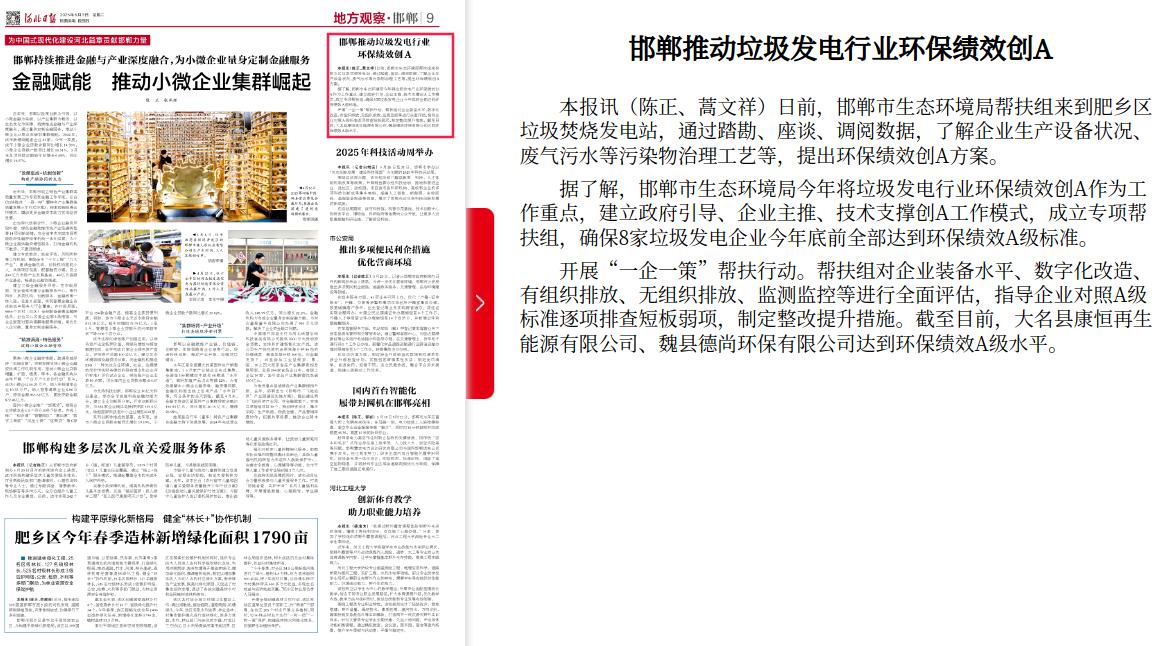 河北日报:邯郸推动垃圾发电行业环保绩效创A