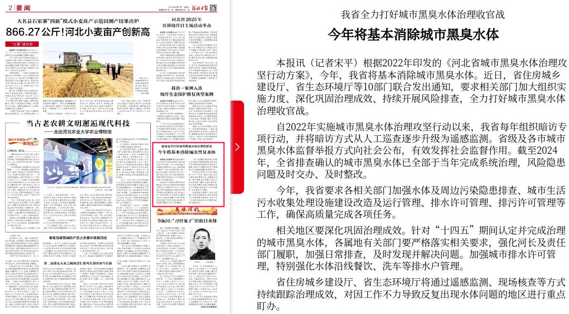 河北日报:我省全力打好城市黑臭水体治理收官战 今年将基本消除城市黑臭水体