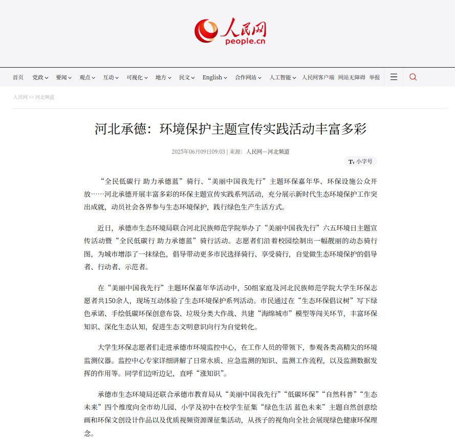 人民网:河北承德:环境保护主题宣传实践活动丰富多彩