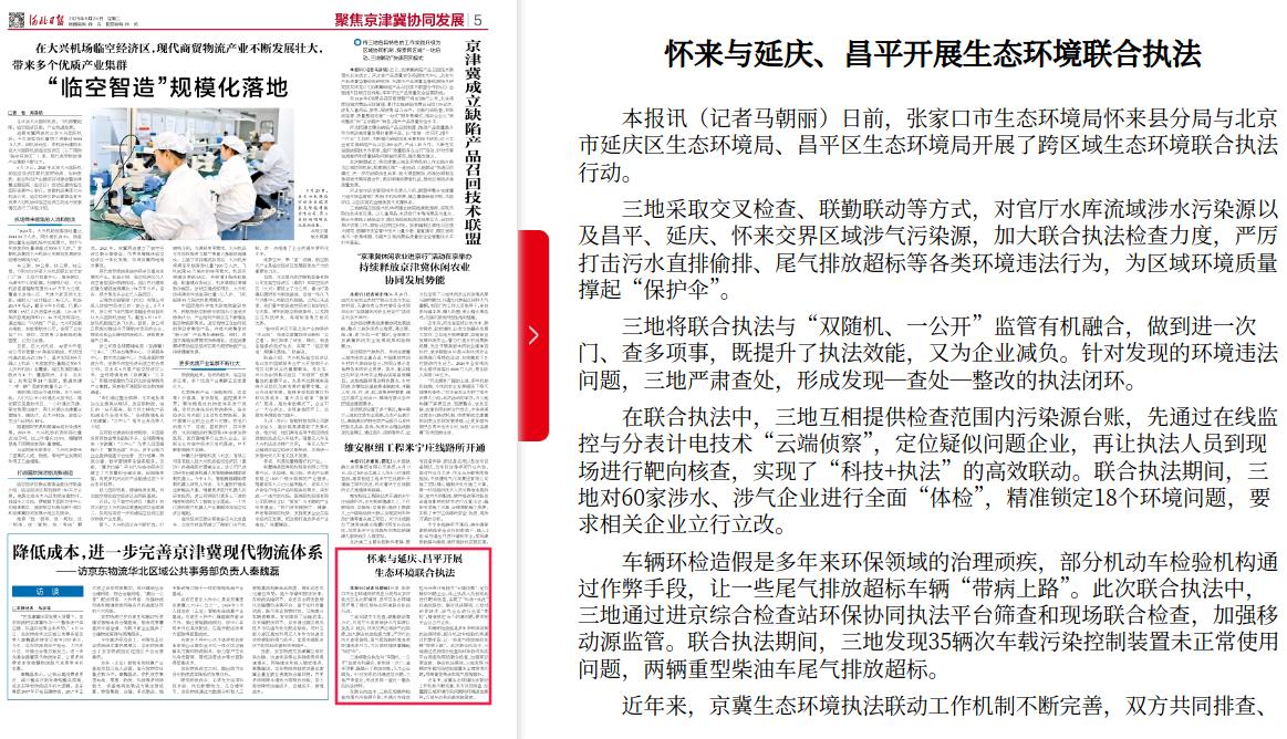 河北日报:怀来与延庆、昌平开展生态环境联合执法