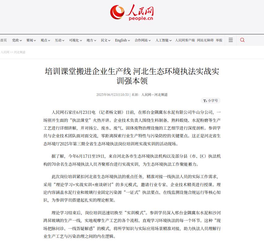 人民网:培训课堂搬进企业生产线 河北生态环境执法实战实训强本领