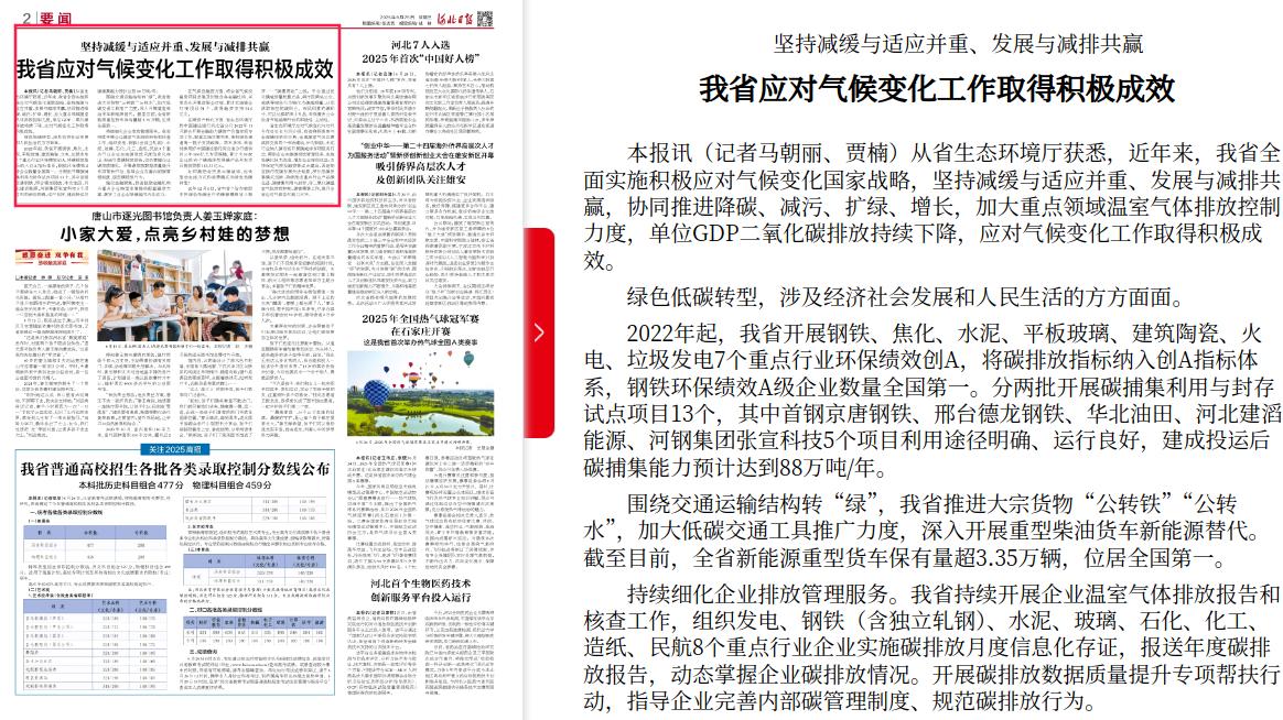 河北日报:坚持减缓与适应并重、发展与减排共赢 我省应对气候变化工作取得积极成效