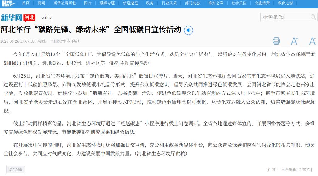 新华网:河北举行“碳路先锋、绿动未来”全国低碳日宣传活动