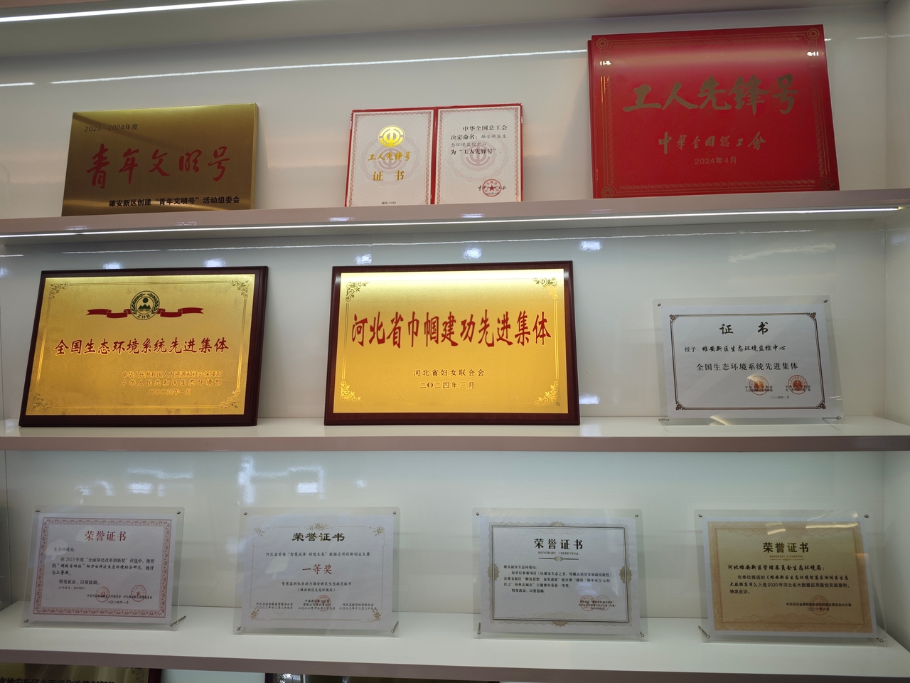 日前,记者跟随中国记协组织的中央和全国性行业类媒体编辑记者增强“四力”教育实践活动走进雄安新区环境监控中心,满墙的荣誉证书揭示了该中心在生态环境治理方面的持续深耕历程。