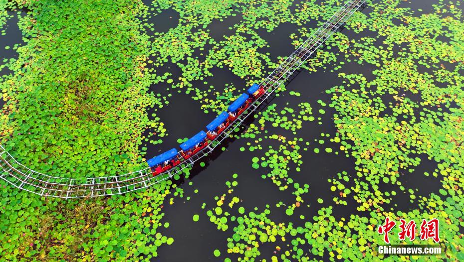 盛夏,“京津冀最美湿地”河北衡水湖万亩荷塘进入盛花期。荷花、飞鸟、水上小火车、游船,勾勒出人与自然和谐共生的画卷,吸引京津冀及周边地区游客纷至沓来。