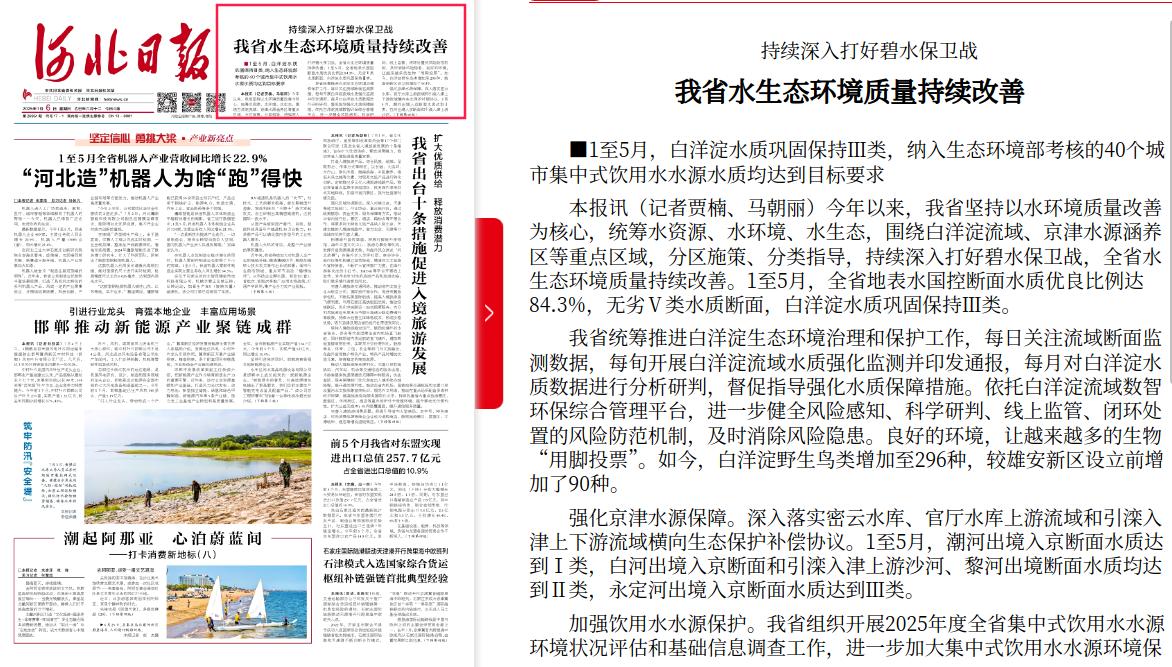 河北日报:持续深入打好碧水保卫战 我省水生态环境质量持续改善
