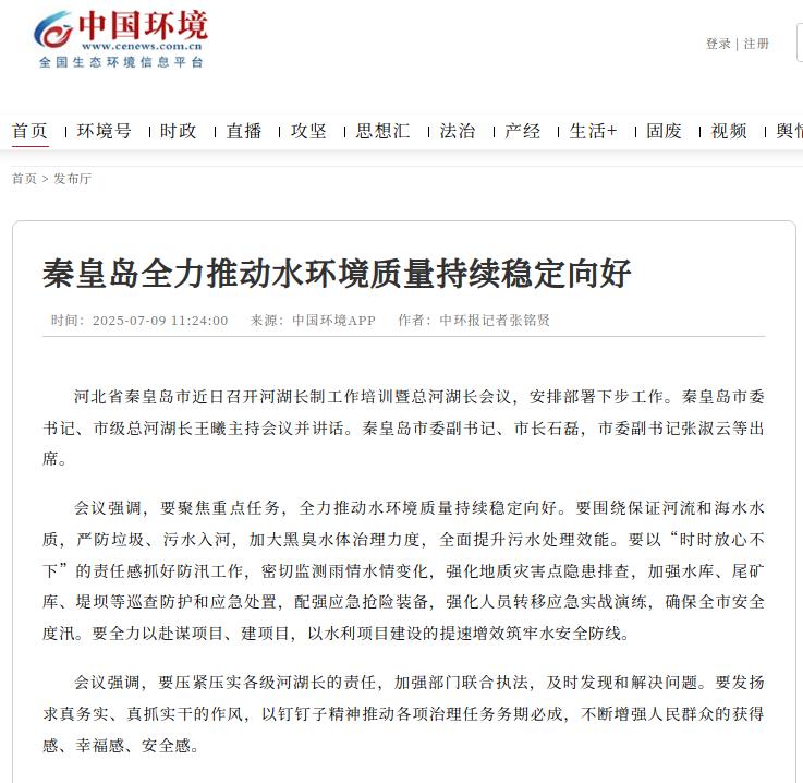 中国环境客户端:秦皇岛全力推动水环境质量持续稳定向好