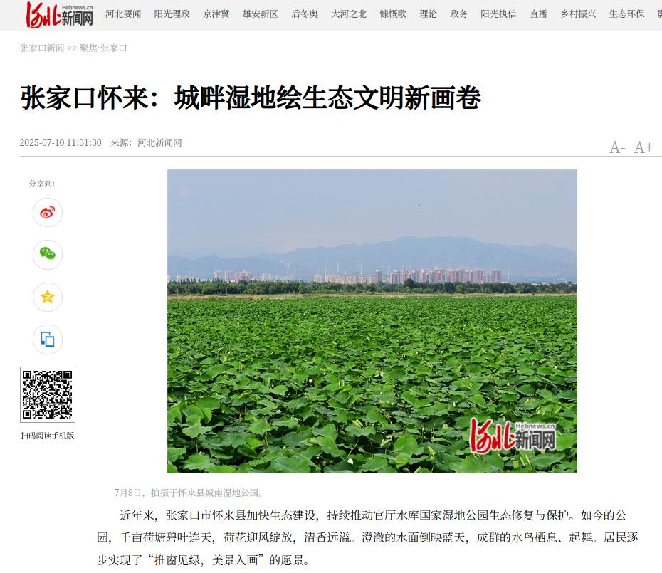 河北新闻网:张家口怀来:城畔湿地绘生态文明新画卷 来源:河北新闻网 时间:2025-07-10