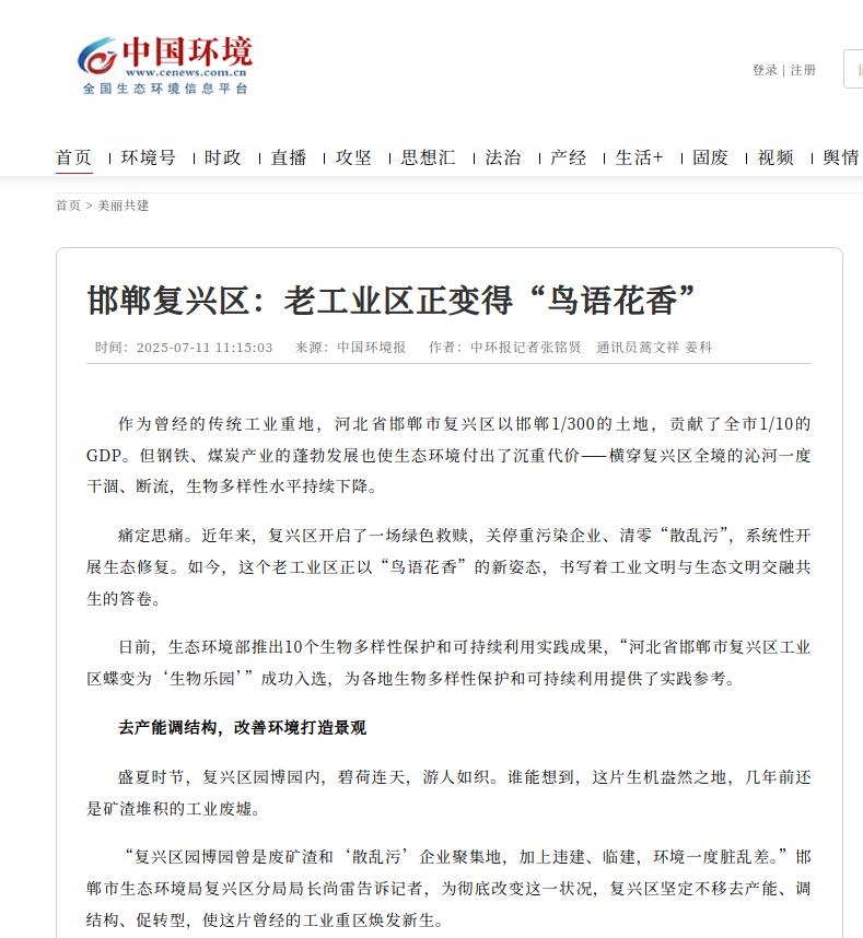 中国环境客户端:邯郸复兴区:老工业区正变得“鸟语花香”