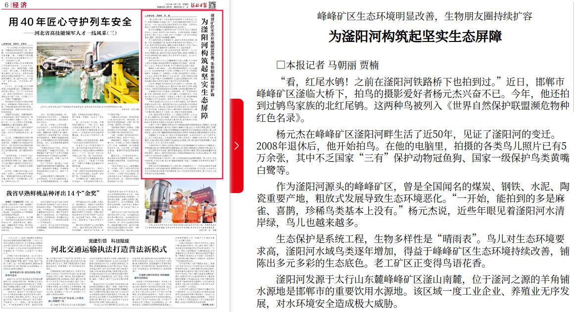 河北日报:峰峰矿区生态环境明显改善,生物朋友圈持续扩容 为滏阳河构筑起坚实生态屏障